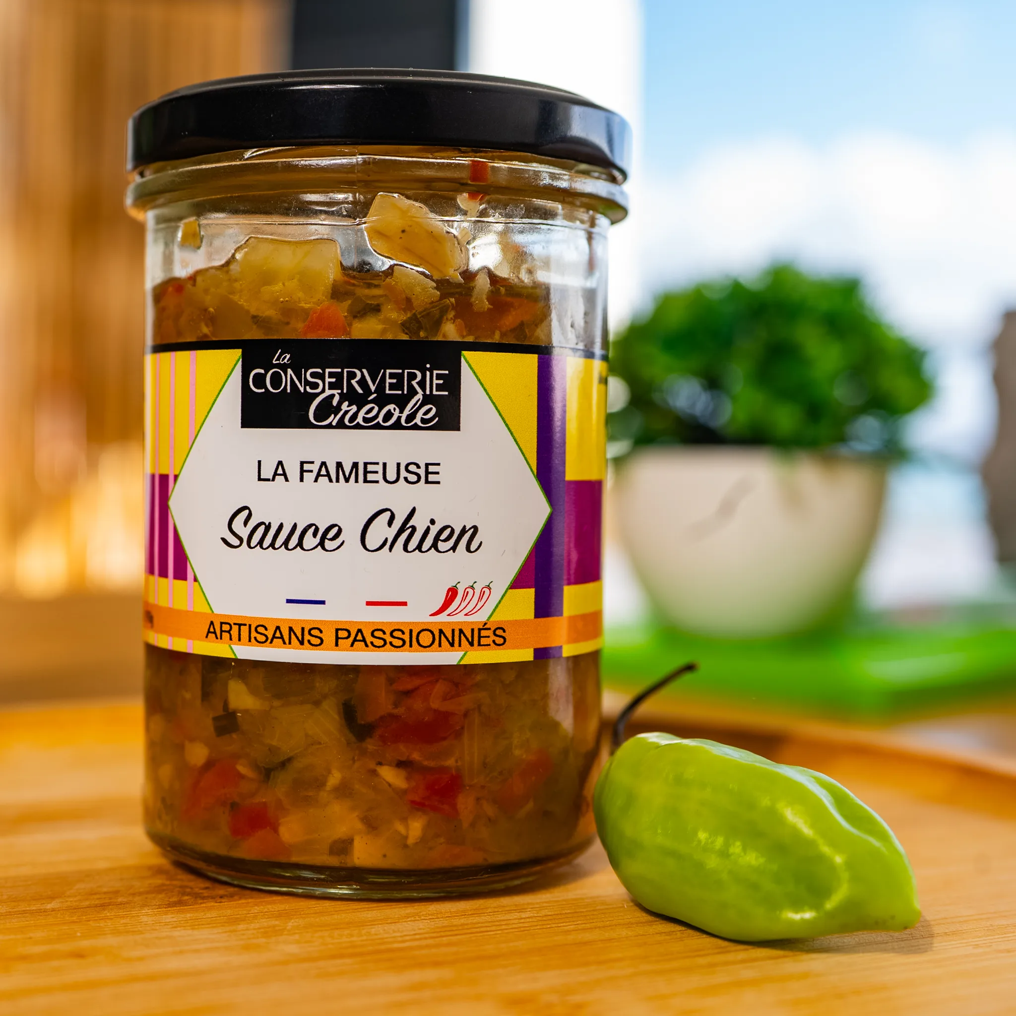 Dans sa version artisanale, la fameuse sauce chien permet de retrouver facilement les saveurs authentiques de la Martinique, sans préparation.